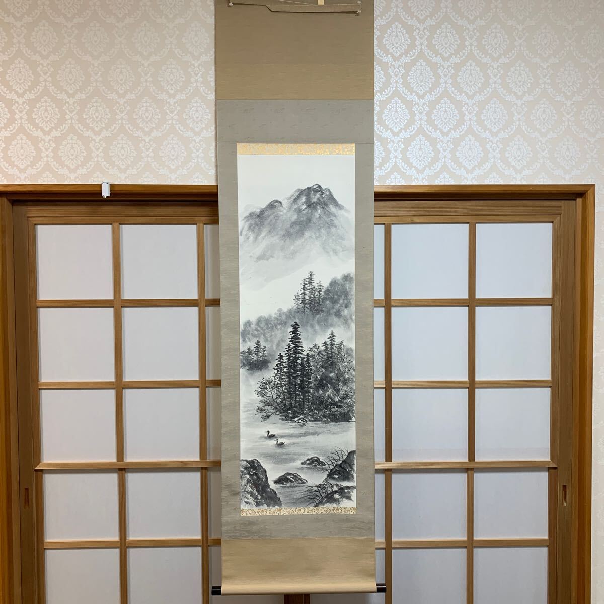 - 掛軸 模写 山水画水鳥 紙箱有り No147