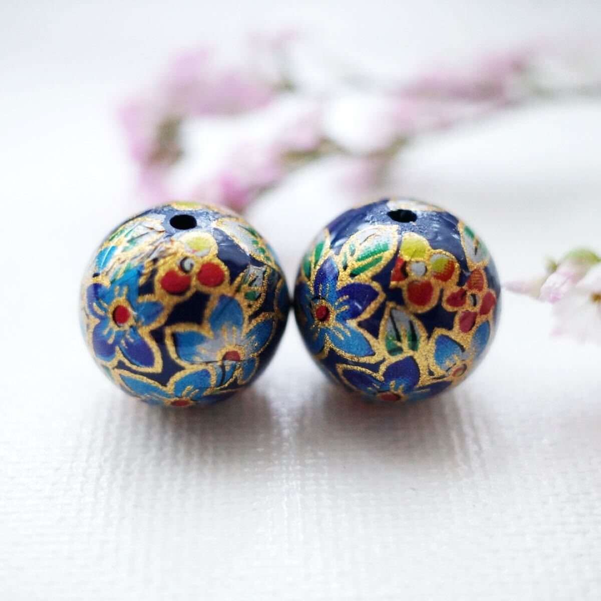 - 1.6㎝☆転写玉☆2個セット☆青花☆和風アクリルビーズ☆丸ビーズ☆ハンドメイド素材☆青