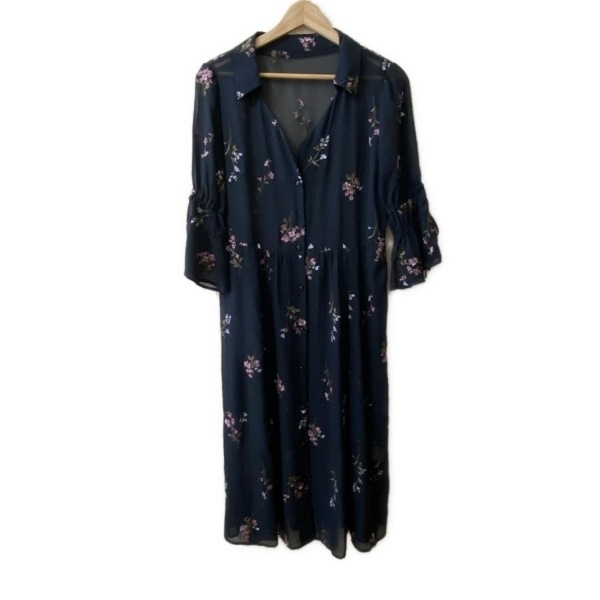 > ジャスグリッティー JUSGLITTY サイズ1 S - ネイビー レディース レギュラーカラー/七分袖/ロング/刺繍/フラワー(花)/シャツワンピ