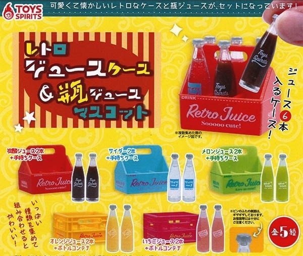 - レトロジュースケース&瓶ジュース マスコット 全5種
