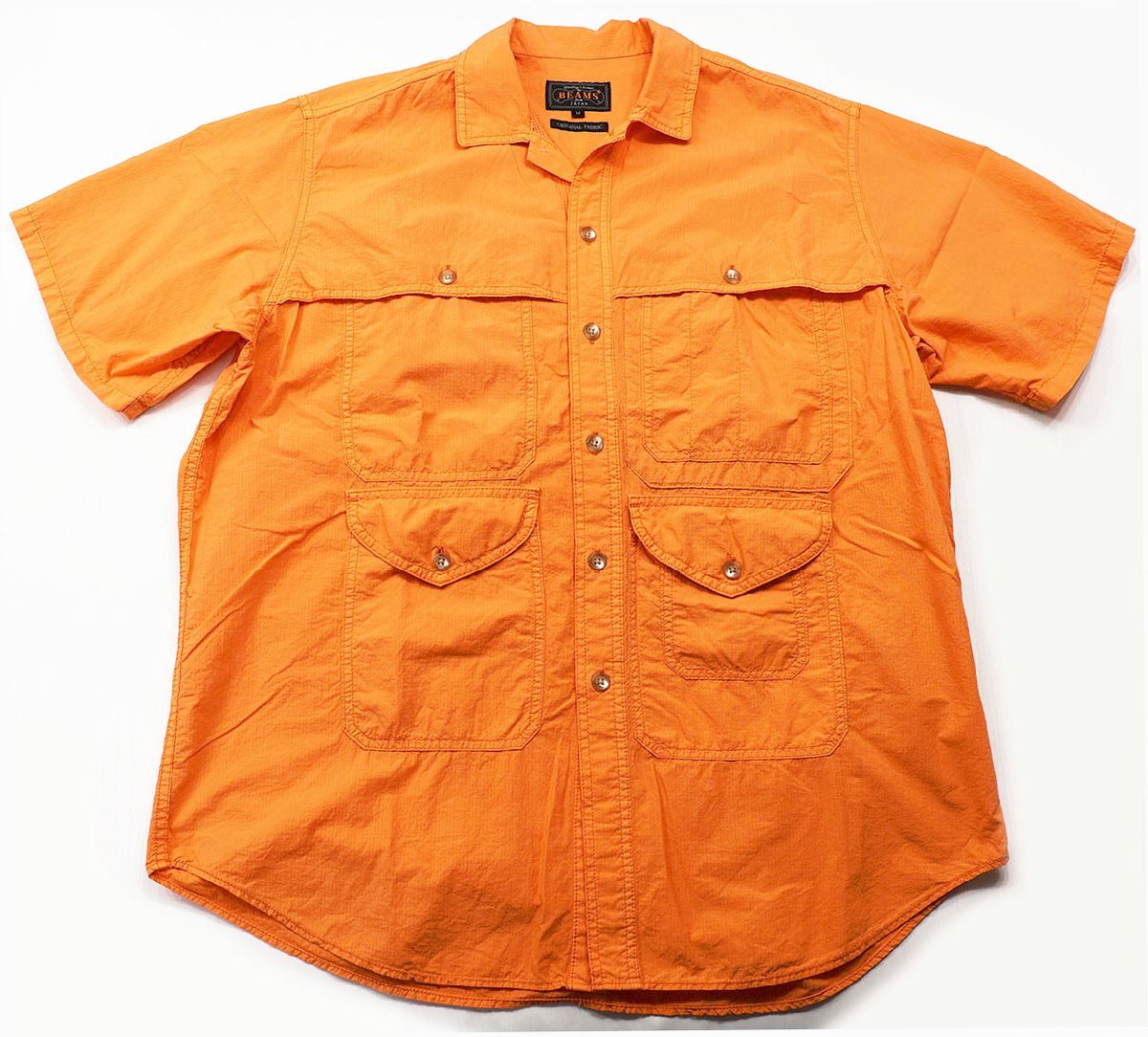 - BEAMS PLUS (ビームスプラス) コットン リップストップ ショートスリーブ アドベンチャーシャツ2 #38-01-0049-791 美品 オレンジ size M