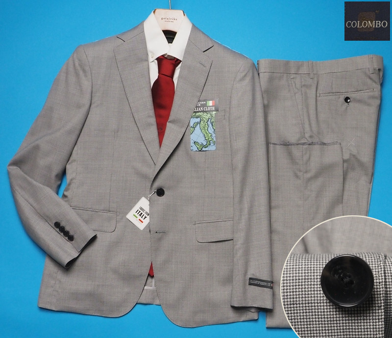 - 新品10.8万円 大手百貨店扱い 日本製 春夏『COLOMBO コロンボ イタリア製生地』シルク混 ウール マイクロ千鳥 スーツA6灰(G) 1706871