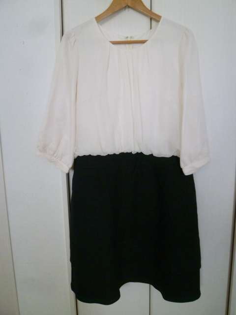 - Add Rouge◇アイボリー×紺異素材ドッキングワンピース17ABRネイビー結婚式入園入学式卒園卒業式パーティー膝丈長袖◇OP730