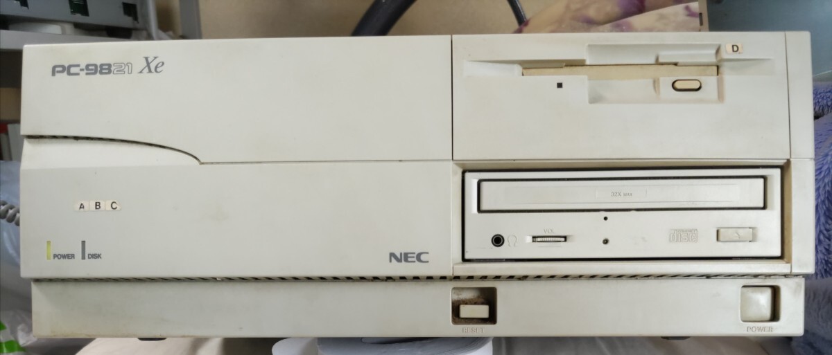 - 箱付PC-9821 Xe 箱付液晶ディスプレイ付 音源付 キーボードマウス付 ソフト付 FD HD CD 動作確認済
