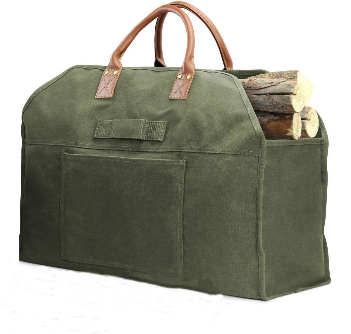 > 大人気 超高品質 薪収納バッグ 折りたたみ キャンプ 革製持ち手 焚き火 アウトドア バーベキュー アクセサリ59cmx26cmx29cm 野外登山