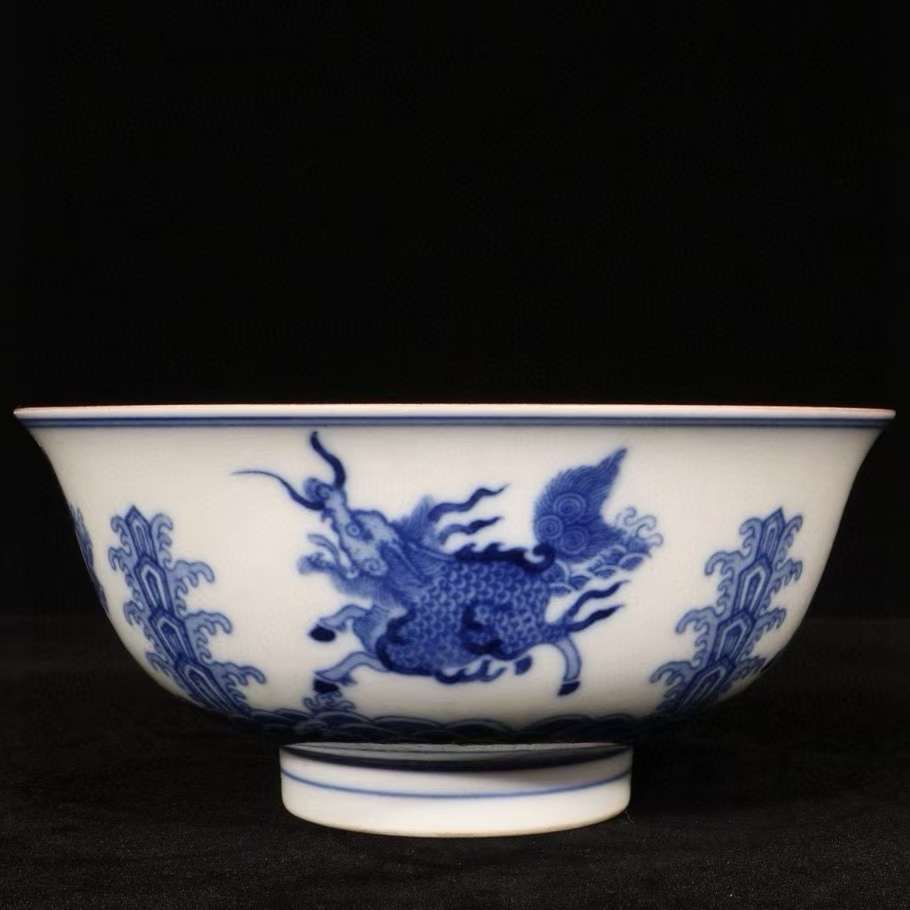 > 磁器碗 秘藏 清代雍正年制 青と白の蒔絵金麒麟紋碗 酒器 茶器 唐磁 染付 陶磁器 收蔵品 古美味 時代物 古美術 古置物 希少珍品 中國文玩7.3