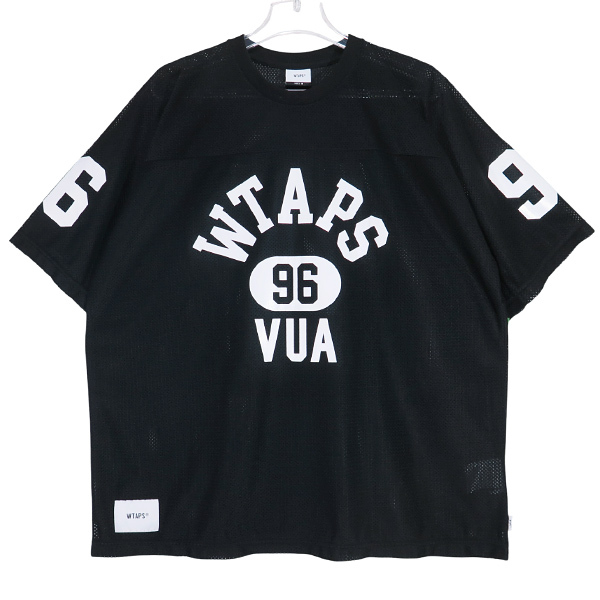 - WTAPS ダブルタップス 24SS QB/SS/POLY.ERA キュービー ショートスリーブ ポリエステル ブラック メッシュ フットボール Tシャツ Julz