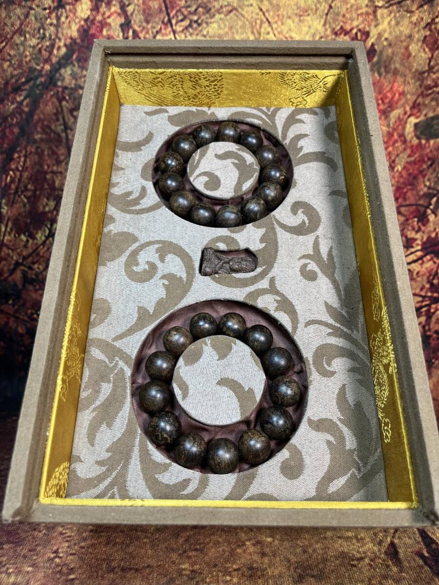 - TM7#4106【3.1】中国骨董 人間国宝 古代木工芸品 彫刻品 【奇楠沈香手串懸物一箱です】 時代物 本物 珍品旧蔵 伝世家珍