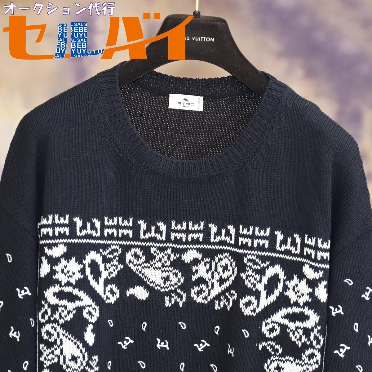 - 本物 新品同 エトロ 2022年モデル paisley bandana embroidery ニットセーター メンズM ブラック トップス ジャケット 国内正規品 ETRO
