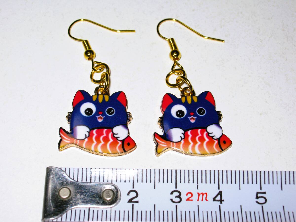 - 【お魚にゃんこ フックピアス 紺 1ペア】猫 ねこ アクセサリー イヤリング さかな キャット 小物 おしゃれ レディース ガールズ お洒落