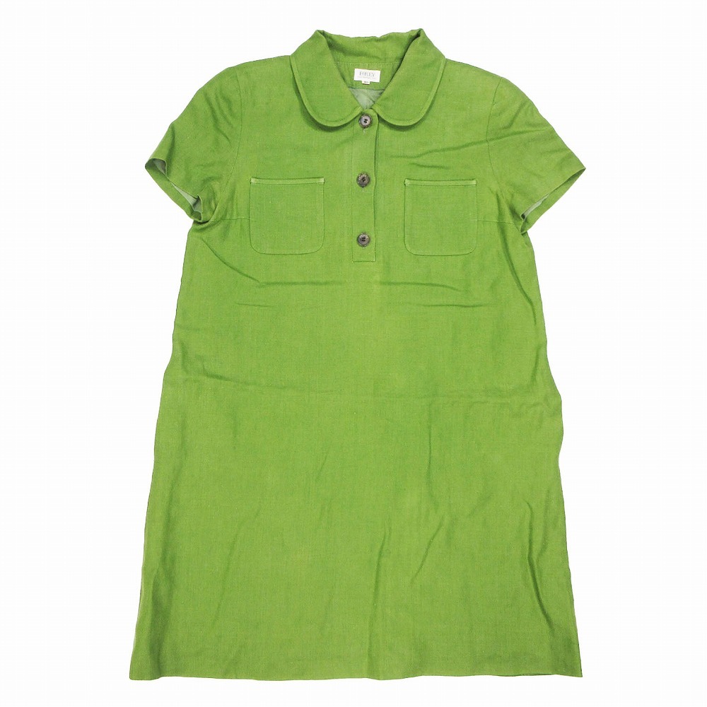 - FOXEY フォクシー リネン ワンピース 半袖 丸襟 ひざ丈 プルオーバー サイズ40 M グリーン 緑 レディース 【中古】