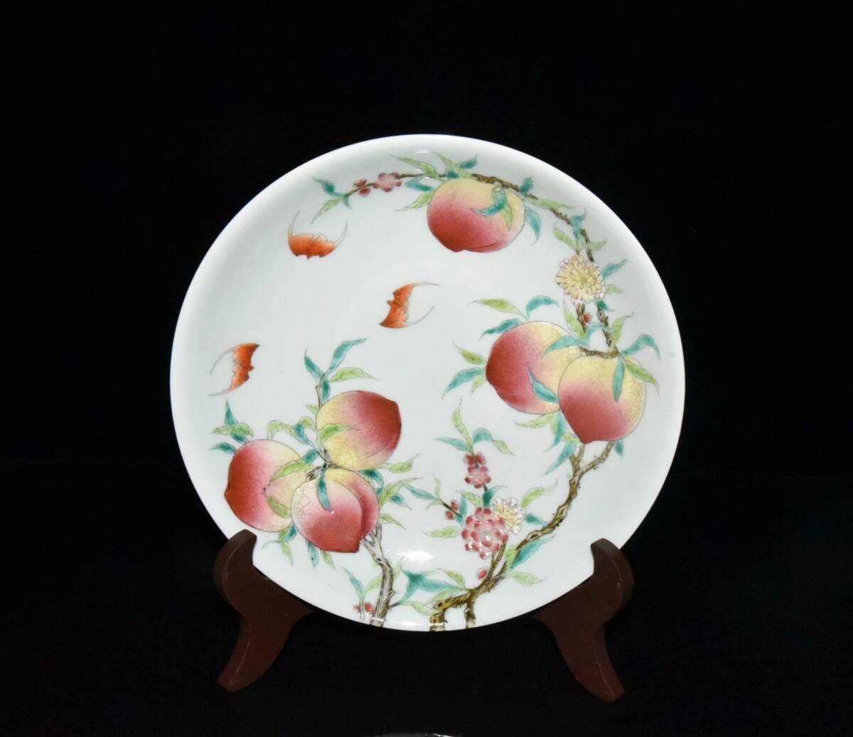 > 『館蔵珍品 清 雍正年製款 古陶瓷品 粉彩 九桃紋 供盤 陶藝』稀少珍蔵品 古賞物 貴重物品 収蔵品 中国古美術 時代物 古董品