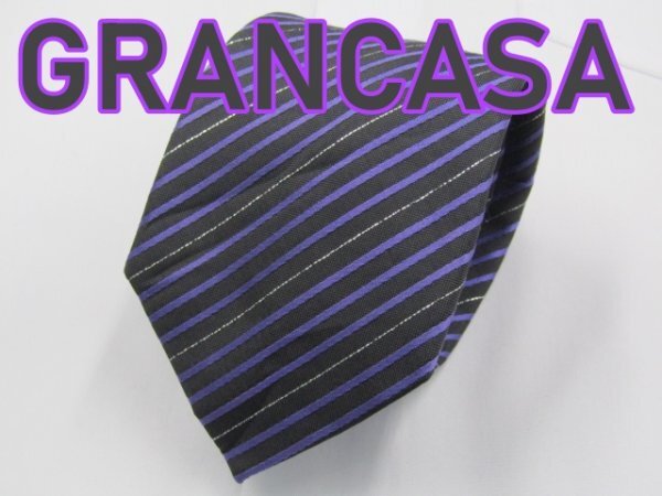 - 【ナロー 細身ネクタイ】 【グランカーサ】 E 687 グランカーサ GRANCASA ネクタイ 黒系 紫系 ストライプ ジャガード