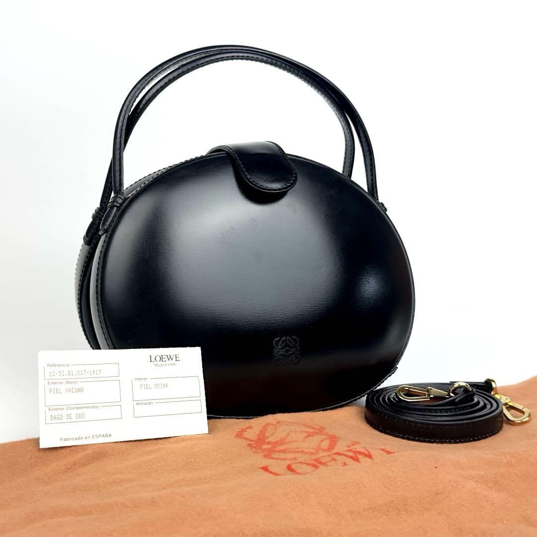 - 人気●LOEWE ロエベ ハンドバッグ 2way ショルダーバッグ アナグラム ラウンド がま口 斜め掛け カーフレザー 黒 ブラック フォーマル 男女