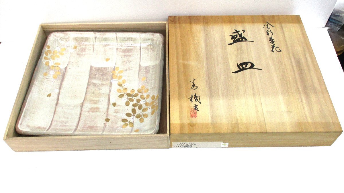 > ★ 100879 盛皿 橘吉 たち吉 桐 金彩草花 947-153 28.5cm角x高さ3.5cm 箱付 未使用 ★