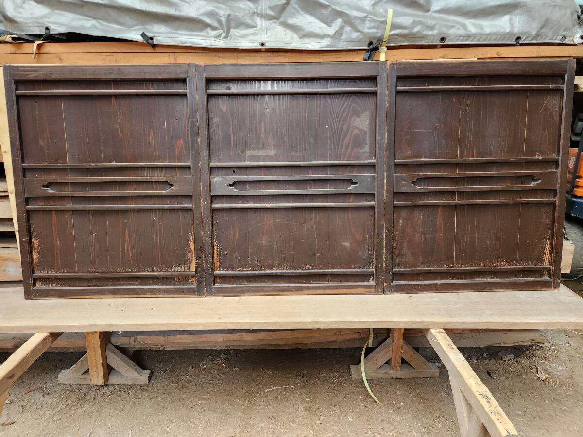 - 古建具 アンティーク 引き違い戸 3枚建て 収納建具