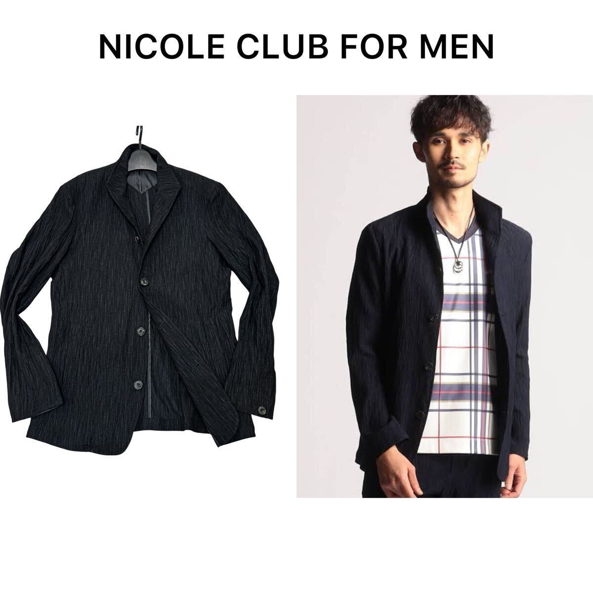 > 24年春夏モデル NICOLE CLUB FOR MEN【上品なプリーツ加工】エステルクレープ スタンドカラージャケット サイズ46(M相当)/ニコルクラブ