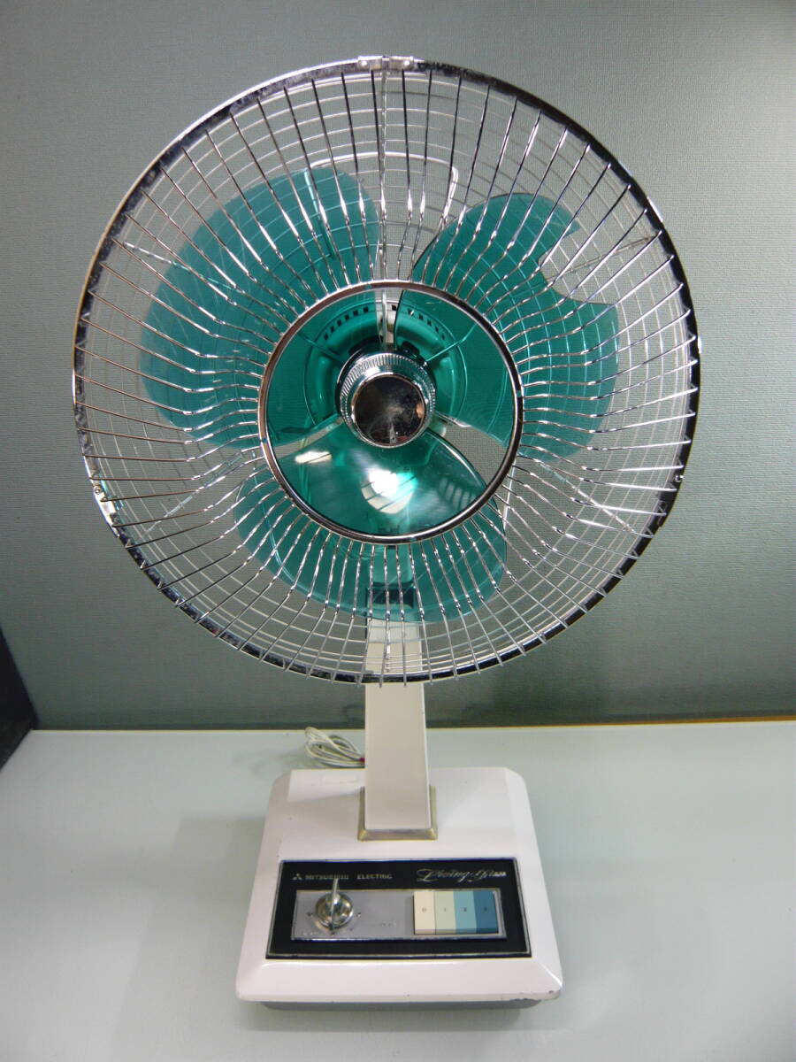 - 羽根割れあり 三菱扇風機 R30-U6型 羽幅30cm 緑3枚羽根 昭和レトロ家電 中古