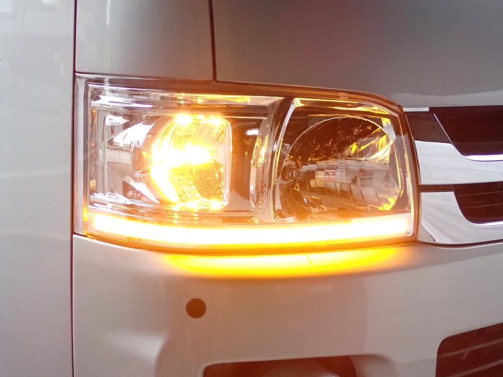 - ハイエース 200系 ヘッドライト クローム LEDバー シーケンシャルウインカー 流れる 純正レベライザー対応 1型 2型 標準 ワイド レジアス