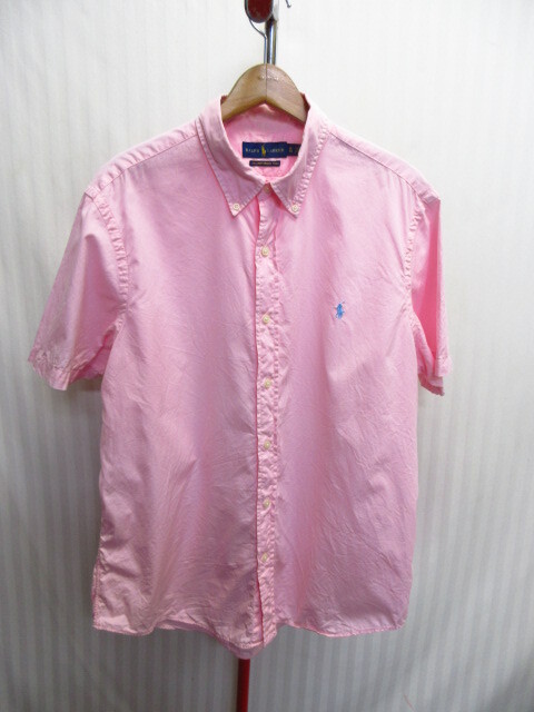 - ラルフローレン 半袖ボタンダウンシャツ メンズXL LL ピンク FEATHER WEIGHT TWILL ロゴ刺繍シャツ ビッグ襟付き半袖カットソー 07022