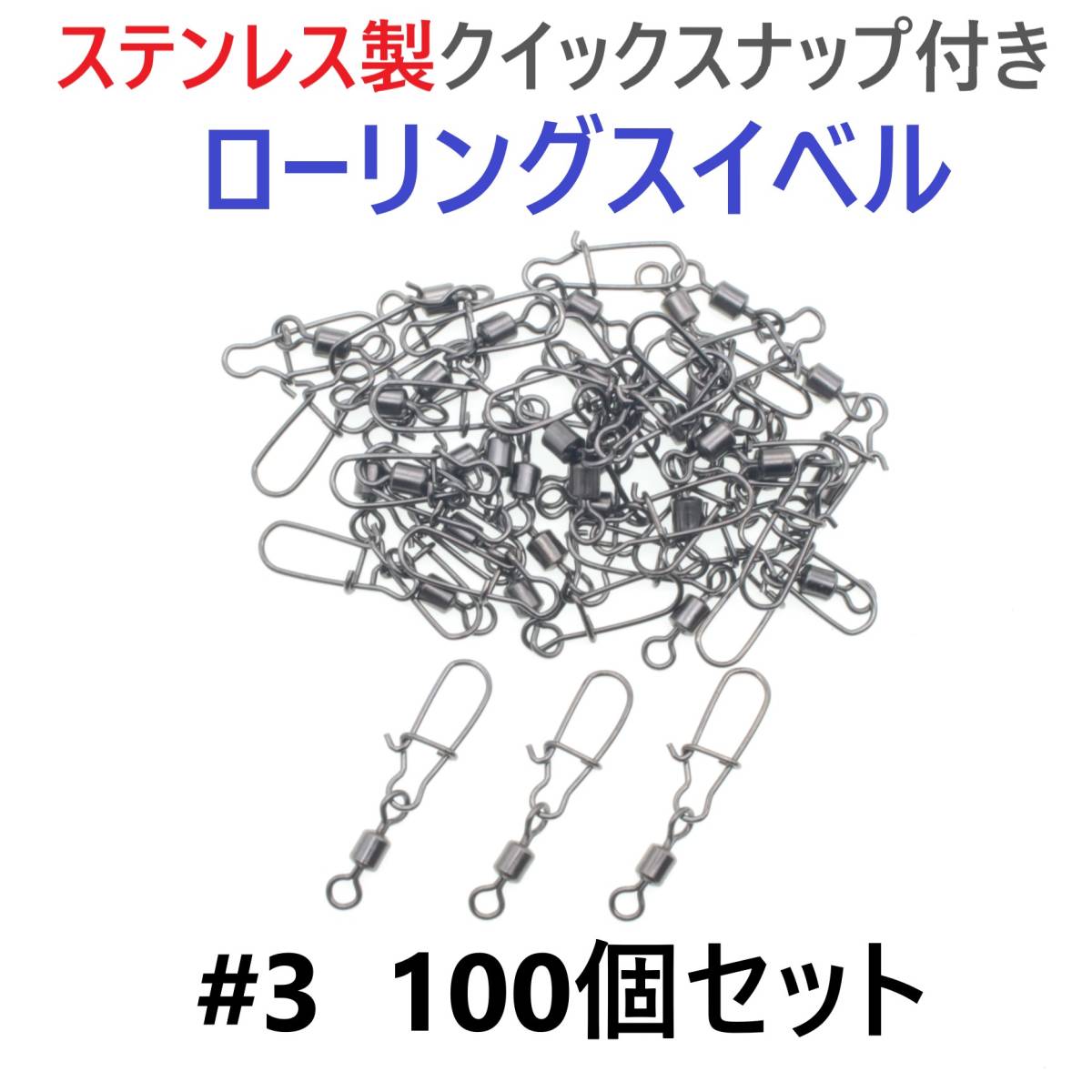 > 【送料180円】ステンレス製 クイックスナップ付き ローリングスイベル #3 (34㎜ 30㎏) 100個セット スナップ サルカン 様々な釣りに!