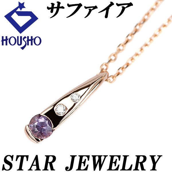 - スタージュエリー パープルサファイア ネックレス ダイヤモンド K18PG STAR JEWELRY ドロップ 雫 涙 華奢 送料無料 中古 宝正 901862