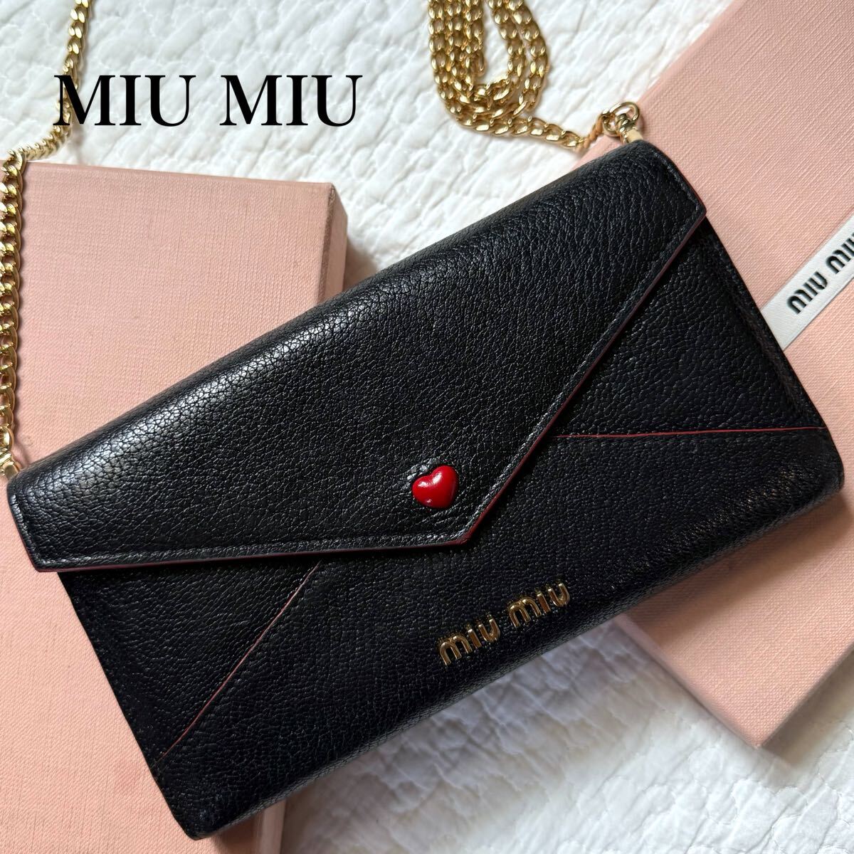 - miumiu(ミュウミュウ) 財布 マドラスラブ 5DH060 黒×レッド チェーンウォレット レザー ショルダーバック ハート ゴールド金具 2way