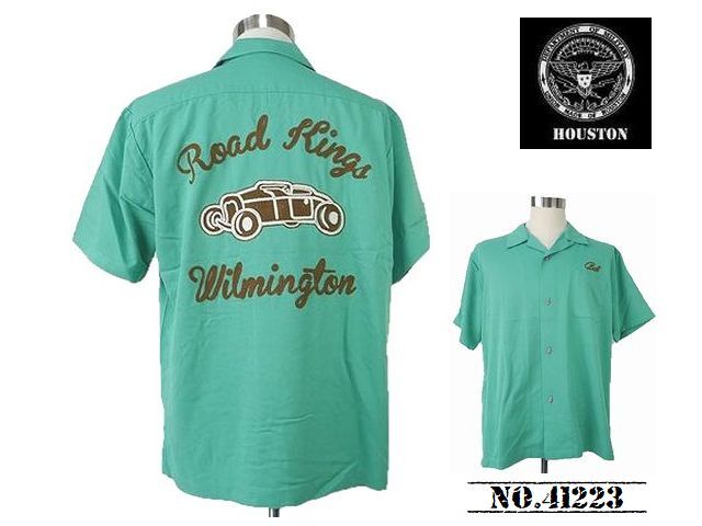 - 【送料無料 35%OFF】HOUSTON ヒューストン 刺繍ボウリングシャツ (ボーリングシャツ) 「ROAD KINGS」柄 NO.41223 MINT_Lサイズ