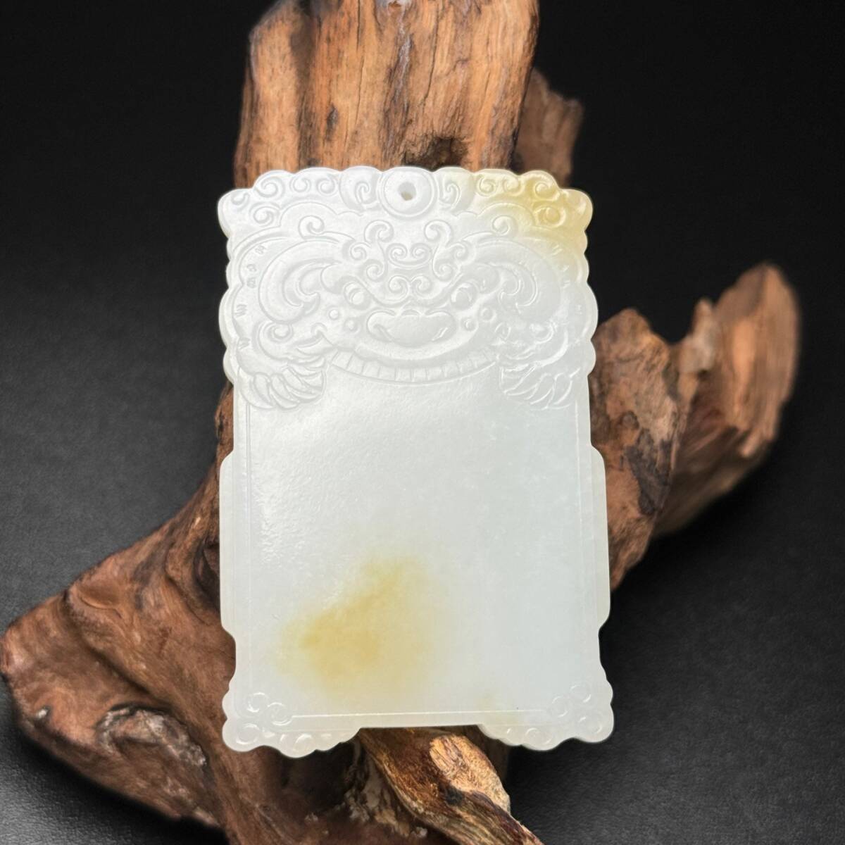 - 蔵友旧蔵出 和田玉製 細密彫 招財納福紋 獣面無事牌 希少珍品 貴重品 置物 古賞物 中国古玩 中国古美術品