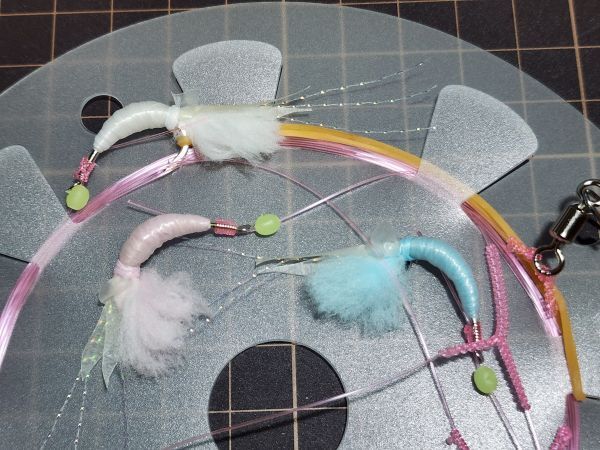 一番上の針のみ親子サルカンに直結して20センチの枝スを出しています。