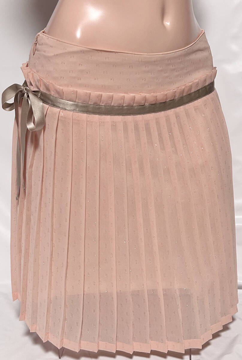 - [gaminerie/未使用] ギャミヌリィ ウエストリボン シースルーレイヤード プリーツ スカート サイズ1号(M-L相当) サーモンピンク