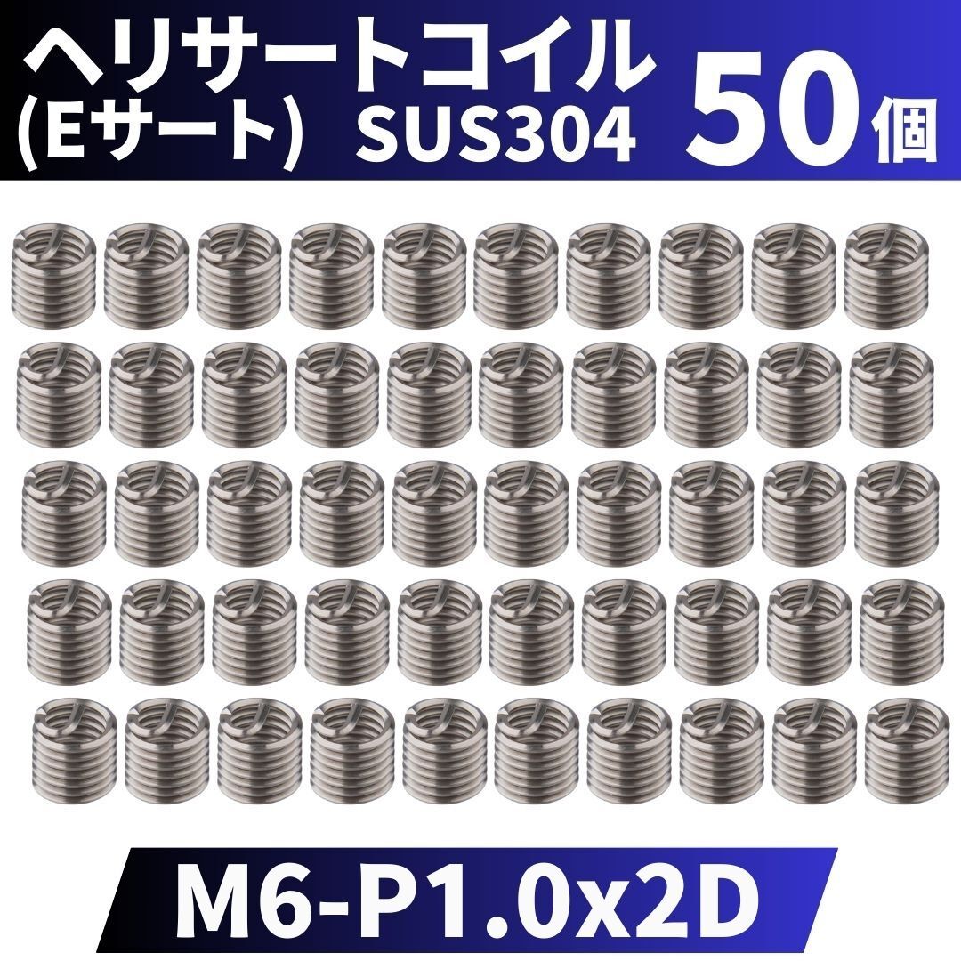 > ヘリサートコイル Eサート SUS304 50個 タップ M6 P1.0 2D 軽金属,鋳鉄,アルミ,樹脂,木材のメネジ山補修 強度アップ 修理 修正 ステンレス