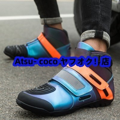 > メンズ 衝撃防護 ライディングシューズ 靴 レーシングブーツ バイクウエア 装備 靴 安全フェイクレザー ブルー 23-28cm