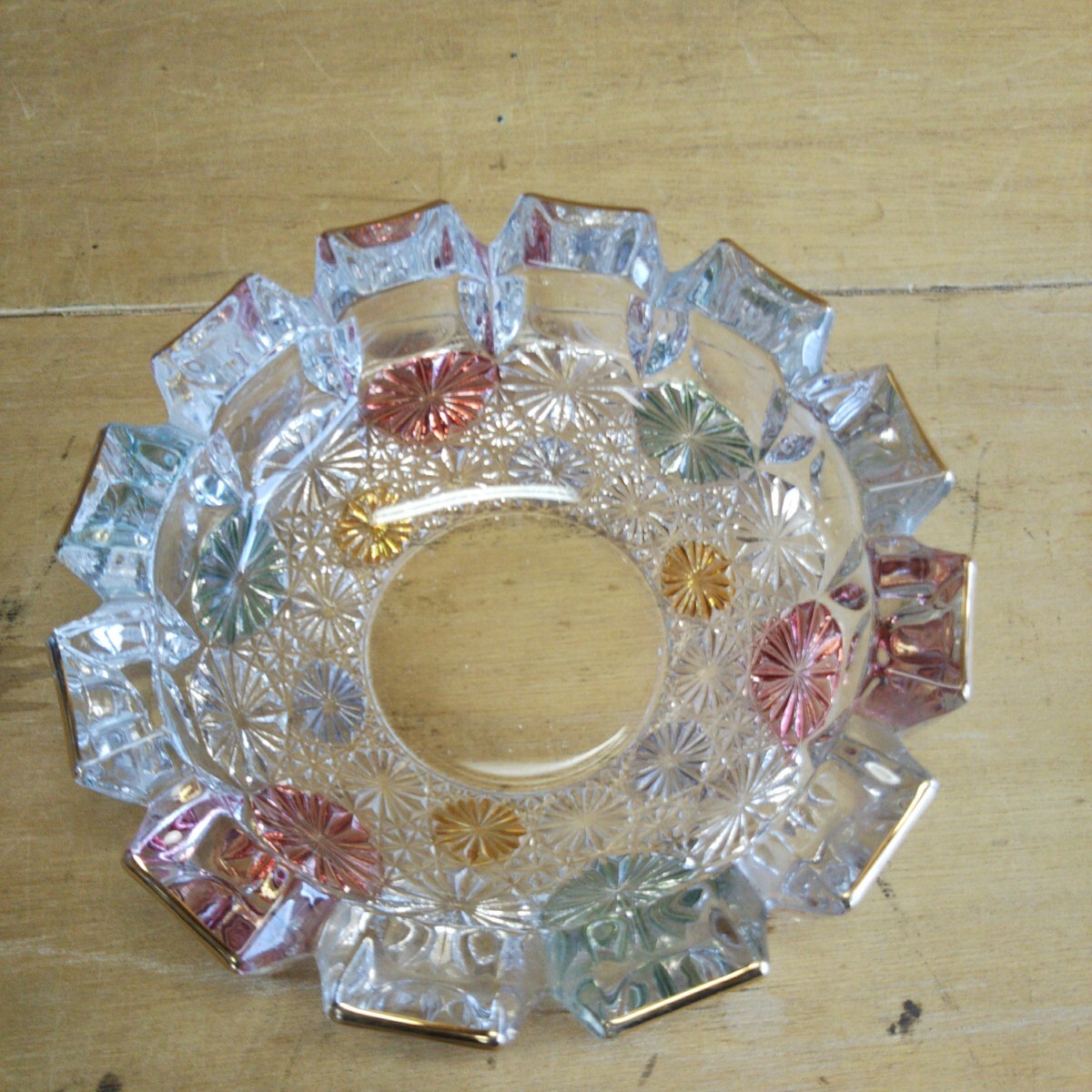 - 25070820 昭和レトロ ガラスの灰皿 美品 金彩 コレクション レインボー色 ガラス細工 コレクション