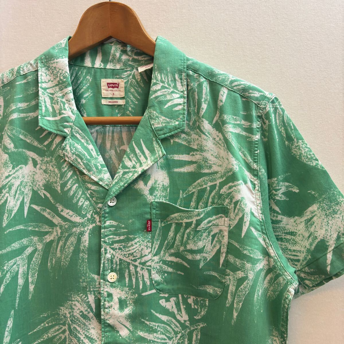 > ボタニカル柄【Levis】リーバイス アロハシャツ S オープンカラー 古着 ALOHA HAWAII 開襟シャツ 501 緑 半袖シャツ ハワイアン