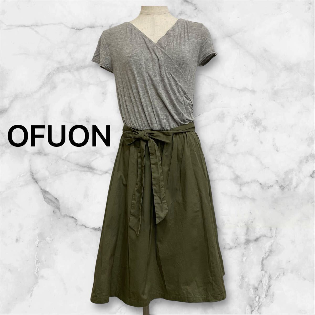 - 最終!OFUONオフオン Mサイズ グレー/カーキ切替カシュクールワンピース