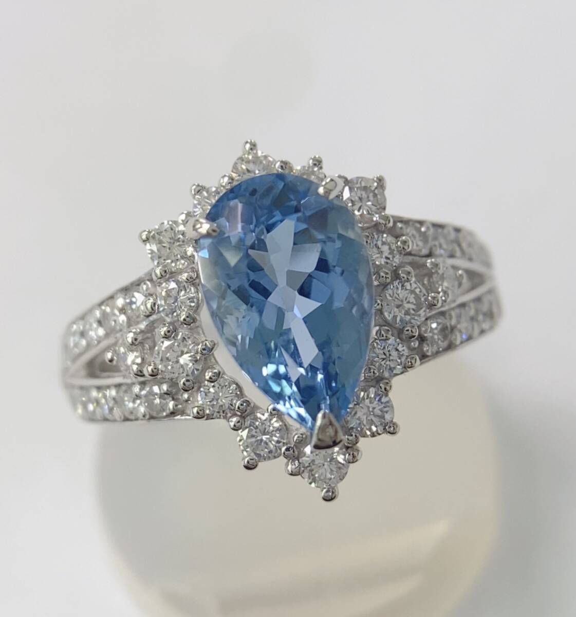 > ★サンタマリアカラー★ 鑑別書付き PT900 天然アクアマリン1.651ct 天然ダイヤモンド0.73ct リング 指輪 約11.5号 約5.2g