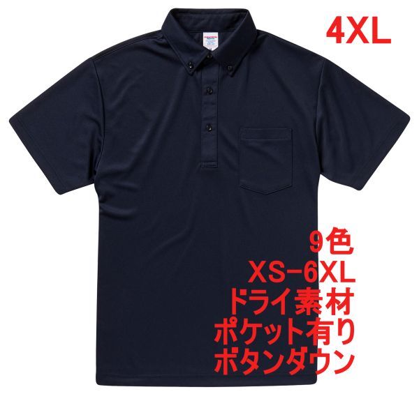 - ポロシャツ XXXXL ネイビー ボタンダウン 半袖ポロシャツ 半袖 ドライ 素材 無地 吸水 速乾 胸ポケット有 A618 4XL 5L 紺 紺色 592101 5921