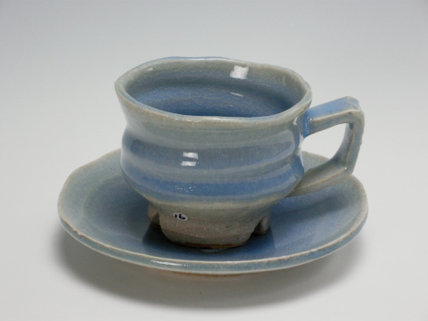 - 【萩焼】 納富 晋 青萩珈琲碗皿(大)