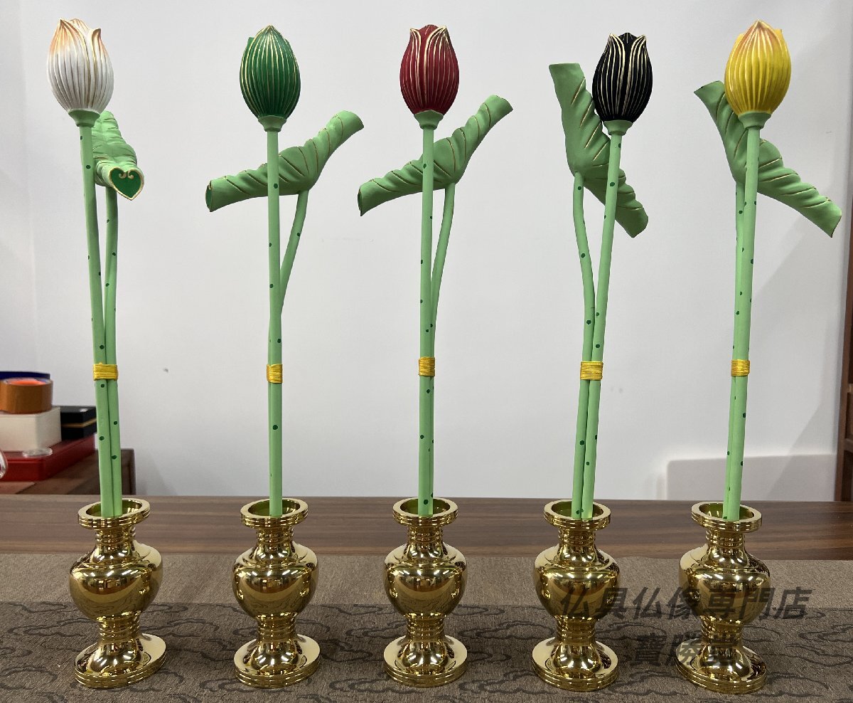 - 一葉一花 木製 木彫 極彩色 常花 仏具 全長48cm【送料無料】【仏具仏像専門店寶勝堂】