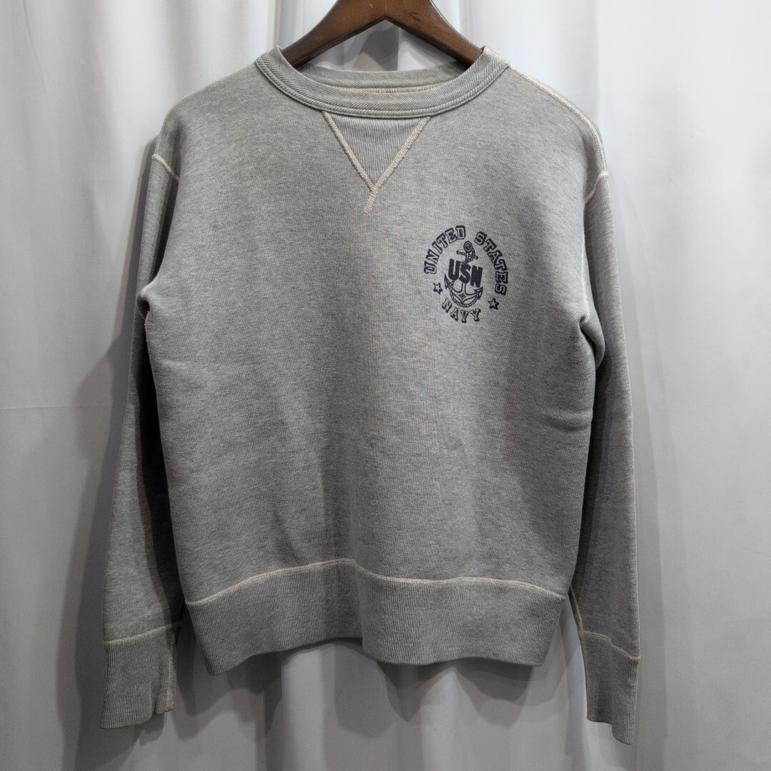 > THE REAL McCOY'S リアルマッコイズ U.S.NAVY プリント 長袖 スウェットトレーナー S メンズ 霜降りグレージャケット/東洋/バズリクソンズ