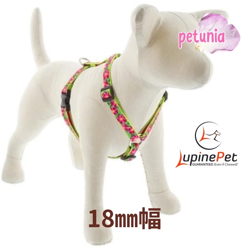 - ローマンハーネス・Mサイズ 18mm幅ペチュニア柄 35-60cm LUPINEルパイン アメリカ製 軽量 丈夫 中型犬