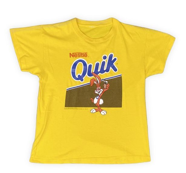 - 90's ビンテージ Tシャツ ネスレ クイック Nestle Quik クイックバニー イエロー 短丈 女性に良いサイズ [la-1351]