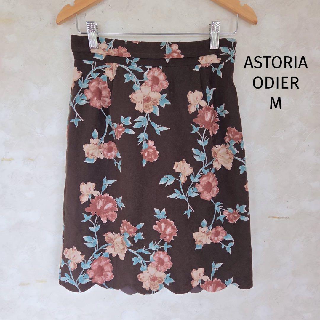 - アストリアオディール スカート 花柄【M】膝丈 フレア ブラウン なめし