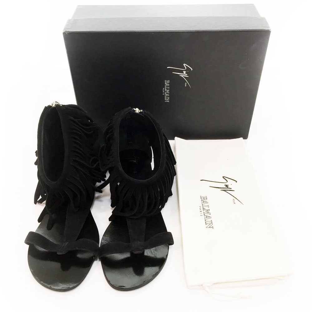 - ◆美品 BALMAIN×GIUSEPPE ZANOTTI バルマン×ジュゼッペザノッティ バックZIPフリンジサンダル レディース38 24cm程度 ブラック 5BC/93226