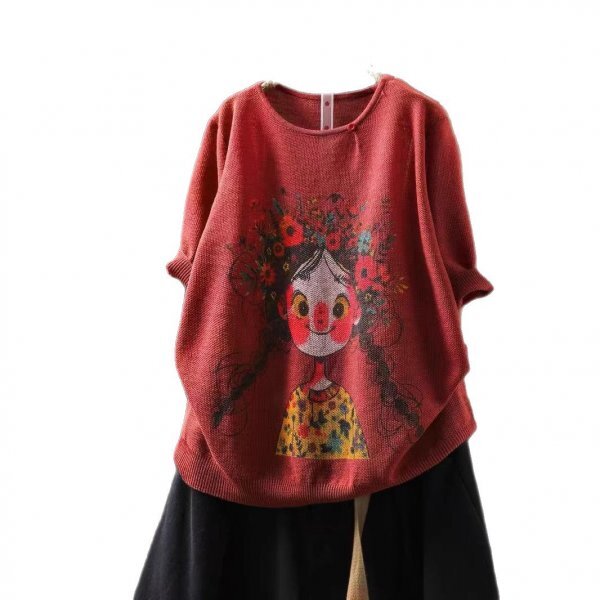 > 25zy サマーニット レディース トップス プリント柄 ラフ 麻タッチニット チュニック ナチュラル 麻混 サラサラ 涼感4