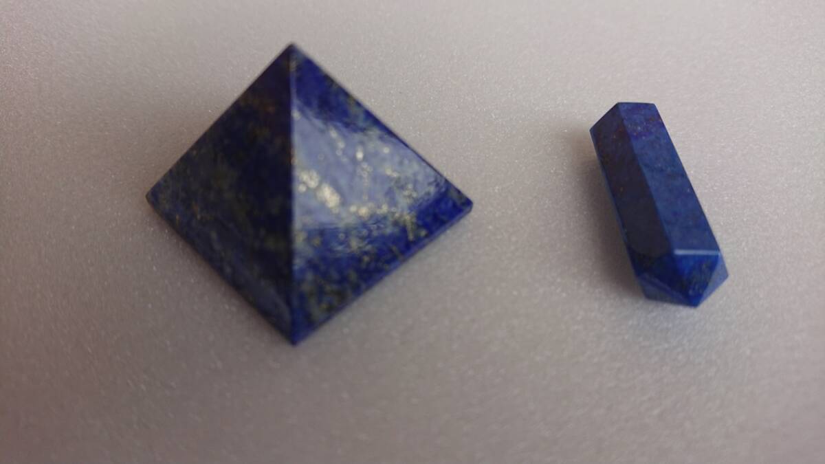 - 激安★ 本場山梨 貴石卸売り店経由でお買い得★ ラピスラズリ 天然石 ピラミッド型 六角柱 現品一点物⑤