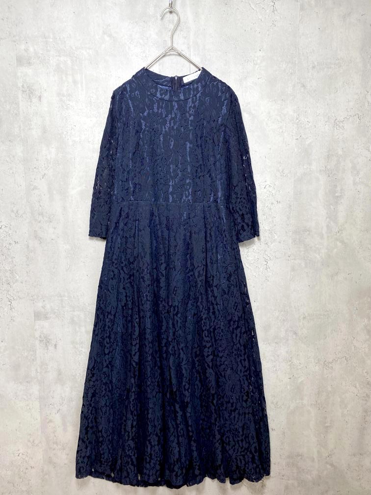 > ゆうパケットOK 新品 LACE LADIES レースレディース SZP24 花柄レース ロングドレス ワンピース sizeXL/紺 ■■