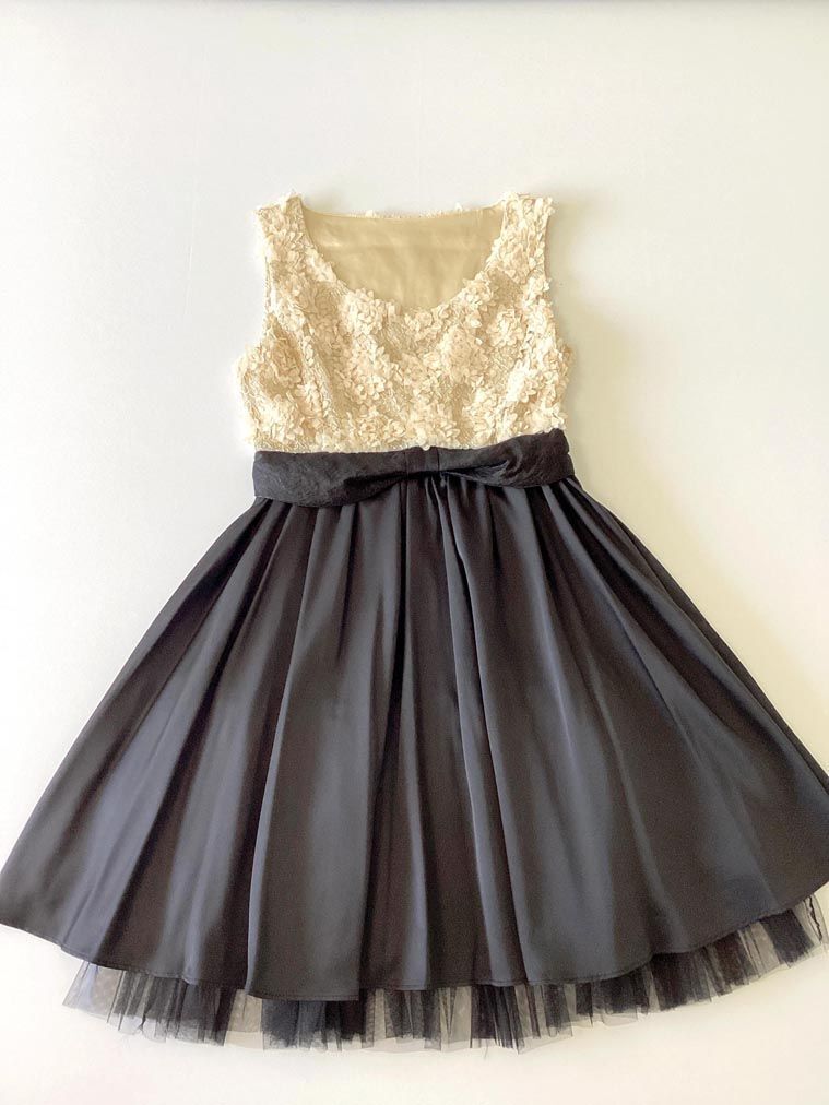 - ゆうパケットOK 美品■?アサクラ フラワーレース ウエストリボン ラメチュール 結婚式二次会 ドレス ワンピース 36/黒xベージュ■■