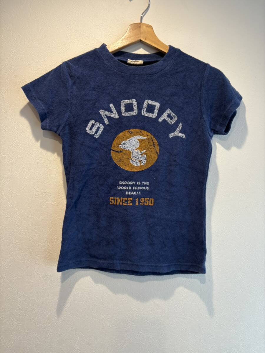 - 00’s初期PEANUTS SNOOPYタオル地半袖短丈Tシャツ 青 M